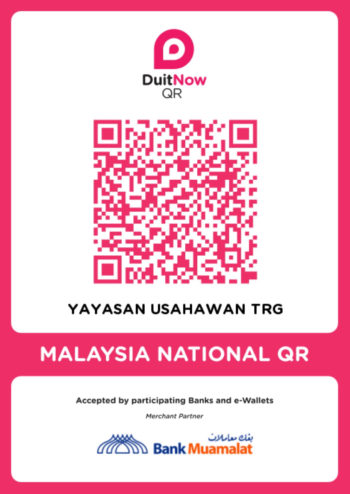 NOTA: Segala pembayaran perlu dijelaskan secara atas talian ke Akaun Bank Muamalat Malaysia Berhad (BMMB) Yayasan Pembangunan Usahawan Terengganu (YPU), No Akaun: 130 1000 2013 711 ATAU pembayaran boleh dijelaskan di Kaunter Pembayaran YPU.